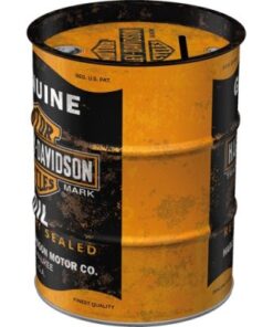 Kasice u obliku naftnog bureta imaju visinu 11,7 cm i prečnik 9,3 cm, sa kapacitetom od 600 ml. Izrađene su od izdržljivog lima, što obezbeđuje dug vek trajanja. Dizajn ovih kasica inspirisan je tipičnim naftnim buretom i uključuje reljefne prstenove bureta za realističan taktilni doživljaj. Motivi i boje naneti su mat lakom, uz teksture koje ostavljaju utisak oljuštene boje i ulja koje curi, stvarajući autentičan, nostalgičan izgled. Naizgled beskrajna prostranstva, priroda koja oduzima dah, neograničena sloboda – „American way of life“ osvaja milione. Malo koji drugi brend predstavlja ovaj mit tako originalno i nefiltrirano kao Harley-Davidson. Kada su Bill Harley i trojica braće Davidson – Arthur, Walter i William – 1903. godine u maloj šupi u Milwaukeeju napravili svoje prve motocikle, verovatno nisu znali da su na pragu stvaranja legende. Godine 1969. brend dostiže vrhunski kultni status zahvaljujući filmu Easy Rider sa Peter Fonda i Dennis Hopper. Dva prerađena chopper motocikla, „Captain America“ sa čuvenom američkom šarom i „Billy Bike“ ukrašen plamenovima, pokrenuli su talas individualizacije među Harley-Davidson vlasnicima koji je i danas jasno prisutan.