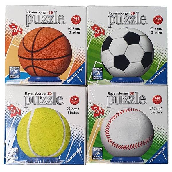 3D puzla u obliku sportske lopte. Broj delova: 54 Dimenzije slagalice: O 7.5 cm Dimenzija pakovanja: 8,1 x 8,1 x 8,1 cm Prikladno za uzrast 8+ Upozorenje! Nije za decu mladju od 3 godine, zbog sitnih delova. Poreklo: Češka Proizvodjac: RAVENSBURGER SPIELEVERLAG GMBH Uvoznik: Licence Only doo