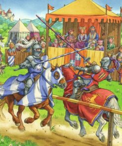 U kutiji se nalaze 3 puzle sa po 49 delica sa borbom vitezova. Zahvaljujuci fino secenim delicima slaganje ove puzle predstavlja pravo zadovostvo. Broj delova: 3×49 Dimenzije slagalice: 21 x 21 cm Dimenzija pakovanja: 27,5 x 19,2 x 3,7 cm Prikladno za uzrast 5+ Upozorenje! Nije za decu mladju od 3 godine, zbog sitnih delova. Poreklo: Češka Proizvodjac: RAVENSBURGER SPIELEVERLAG GMBH Uvoznik: Licence Only doo