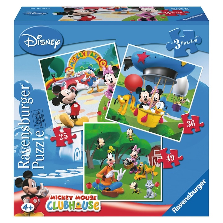 U kutiji se nalaze 3 puzle sa slikama Mikija Mausa I njegove druzine, svaka sa razlicitim brojem delica: 25, 36, 49. Broj delova: 25/36/49 Dimenzije slagalice: 18 x 18 cm Dimenzija pakovanja: 22,2 x 22,2 x 6,8 cm Prikladno za uzrast 4+ Upozorenje! Nije za decu mladju od 3 godine, zbog sitnih delova. Poreklo: Češka Proizvodjac: RAVENSBURGER SPIELEVERLAG GMBH Uvoznik: Licence Only doo
