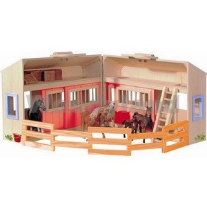 Štale za vaše omiljene konje, pogodna za nošenje jer ima ručku na vrhu. U štali se nalaze i merdevine, bale sena i ograde.Takođe tu su dve figure farmera i dva konja. Štala je napravljena od kvalitetnog materijala u prirodnoj boji.